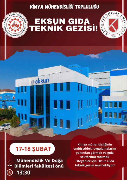Gıda sektörünün devlerinden, Sinangil markasına hayat veren Eksun Gıda fabrikasına teknik gezi düzenliyoruz. Teorik derslerde gördüğümüz üretim süreçlerini, kalite kontrol laboratuvarlarını ve Türkiye’nin en modern değirmen teknolojilerini yerinde inceleyeceğiz.
