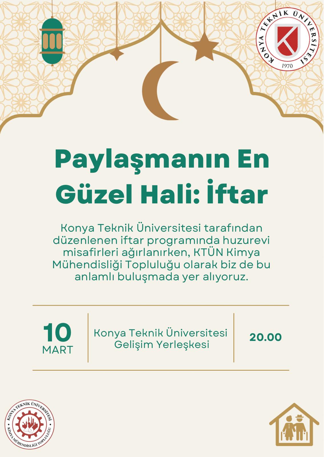 Topluluk üyelerinin bir araya gelerek birlikte akşam yemeği yemesi, sosyal etkileşimin artırılması ve dönem içi iletişimin güçlendirilmesi amacıyla düzenlenen iftar yemeği organizasyonudur. Etkinlik, 18.00–20.00 saatleri arasında Akkonak Restaurant’ta gerçekleştirilecektir. Program kapsamında yemek organizasyonu ve AmericanLIFE sponsorluğunda çekiliş etkinliği yer almaktadır.