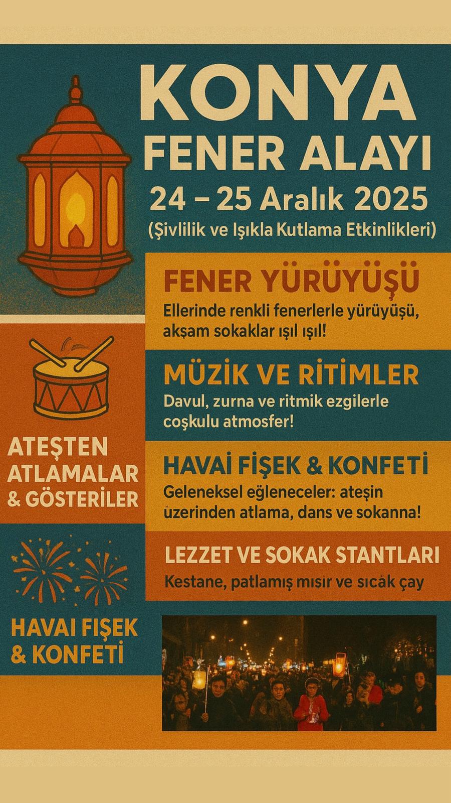 Topluluğumuz tarafından, Şivlilik geleneğinin yaşatılması ve katılımcılar arasında sosyal etkileşimin artırılması amacıyla bir Fener Alayı etkinliği düzenlenecektir. Belirlenen tarih ve saatte toplanma alanında başlayacak olan etkinlik, planlanan güzergâh boyunca düzenli ve kontrollü bir şekilde gerçekleştirilecektir.Bu etkinlik ile geleneksel değerlerimizin günümüz sosyal yaşamı içerisinde deneyimlenmesi hedeflenmekte olup, tüm üyelerimiz ve davetlilerimiz katılıma davetlidir. Etkinlik; 24 Aralık Çarşamba günü saat 19.00'da Ecdat Parkında, topluluk üyelerinin katılımıyla gerçekleştirilecektir.