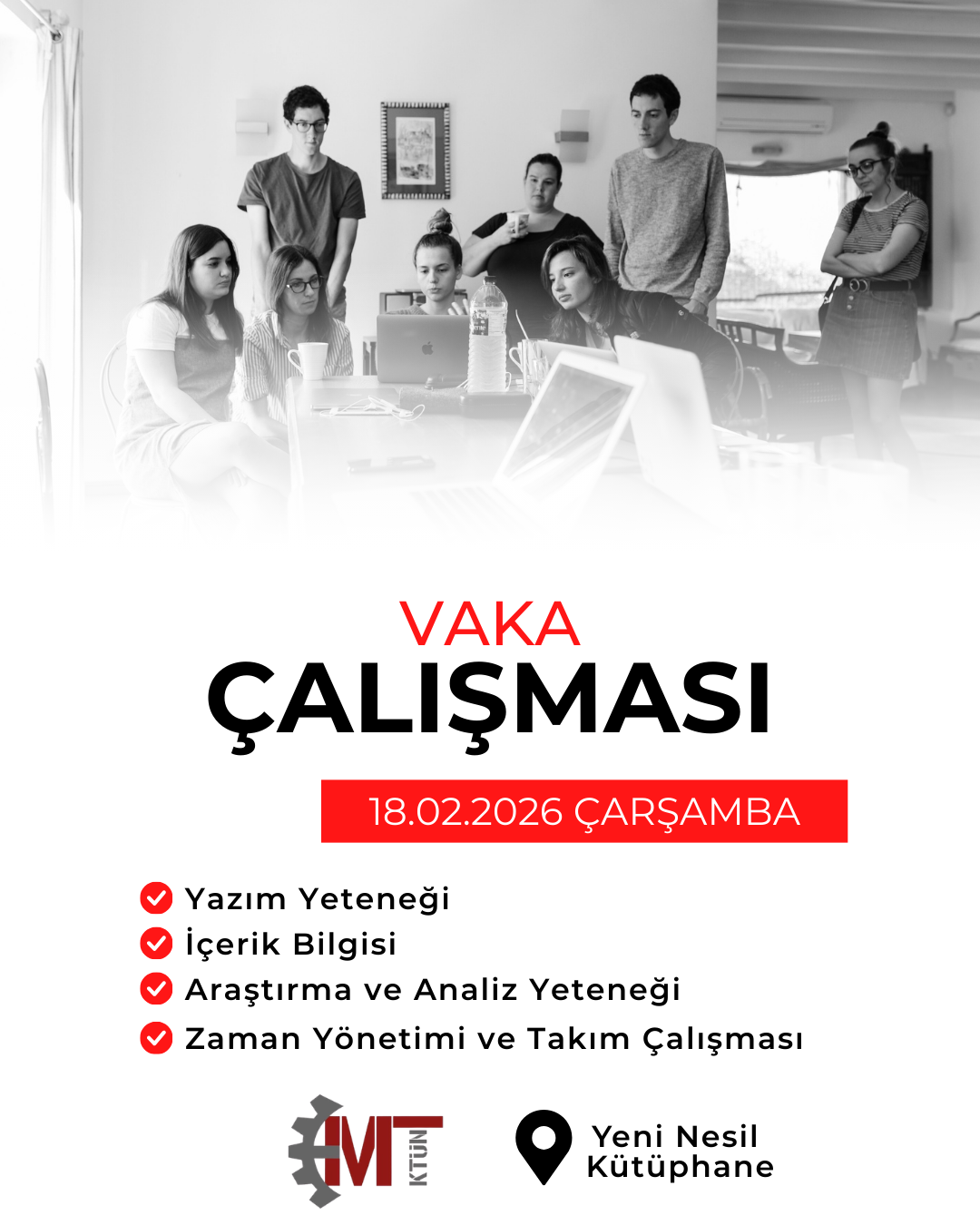 Endüstri Mühendisliği Topluğu olarak bir vaka çalışması etkinliği düzenlemeyi planladık. Amaç; Ne olmuş? Neden olmuş? Nasıl çözülmüş (ya da çözülebilir)? sorularına sistemli biçimde cevap bulmaktır.