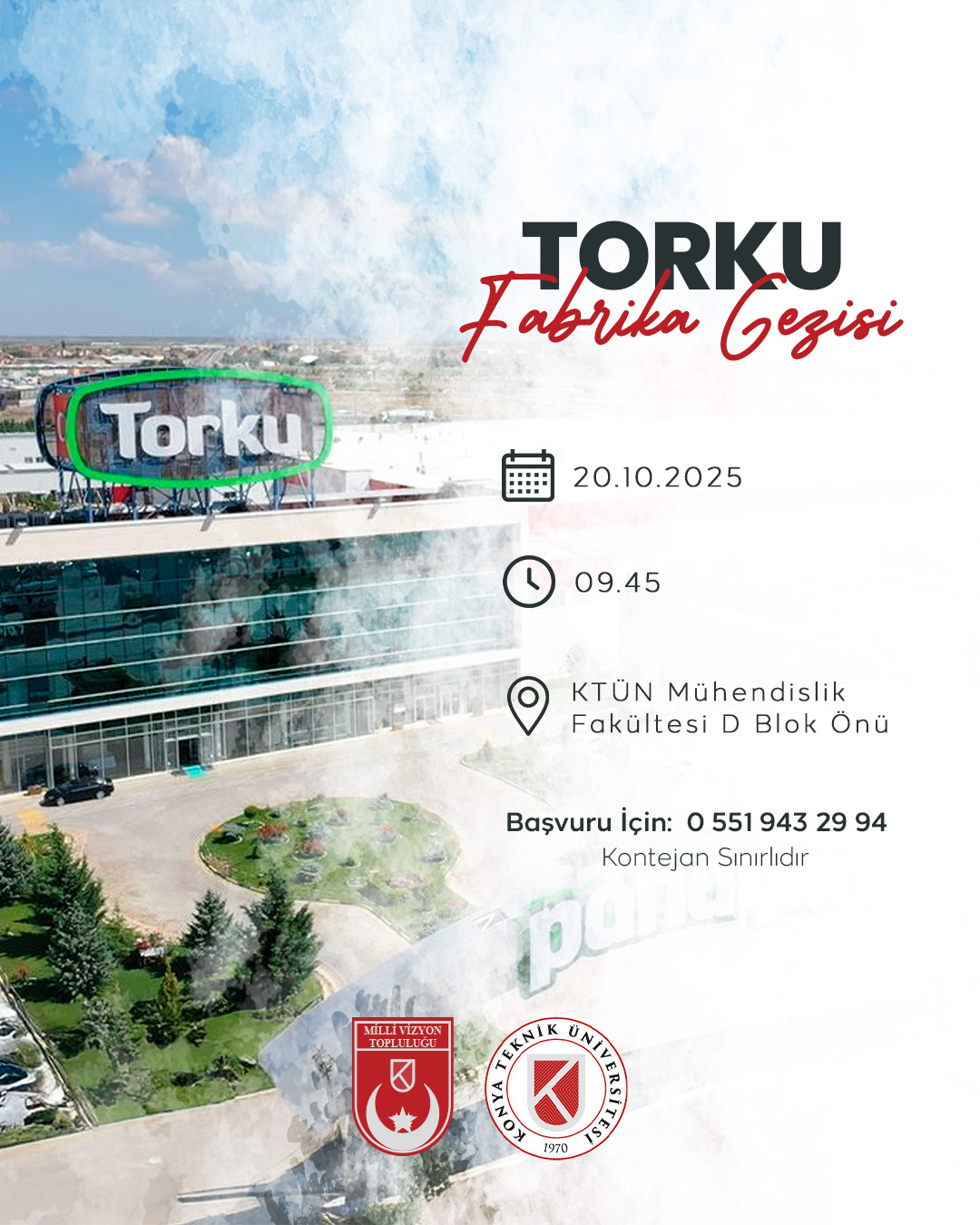 Konya Teknik Üniversitesi Milli Vizyon Topluluğu olarak Konya'nın önemli tesislerinden Torku'ya bir teknik gezi düzenliyoruz.